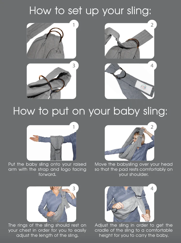 - A hands free baby sling that is easy to put on and to adjust using the steel rings